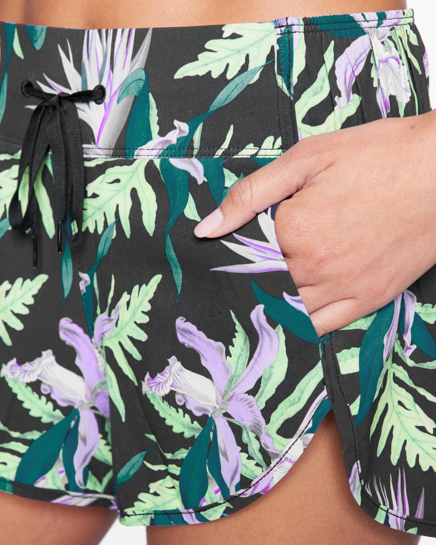 - Printed active inspired boardshort with draw-cord closure.